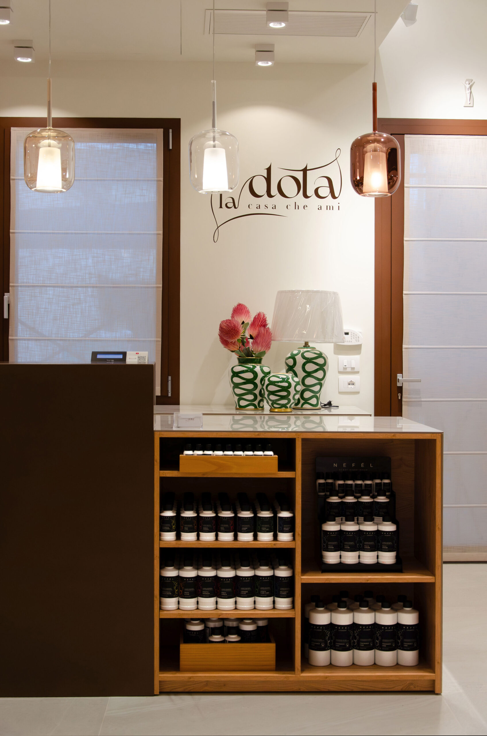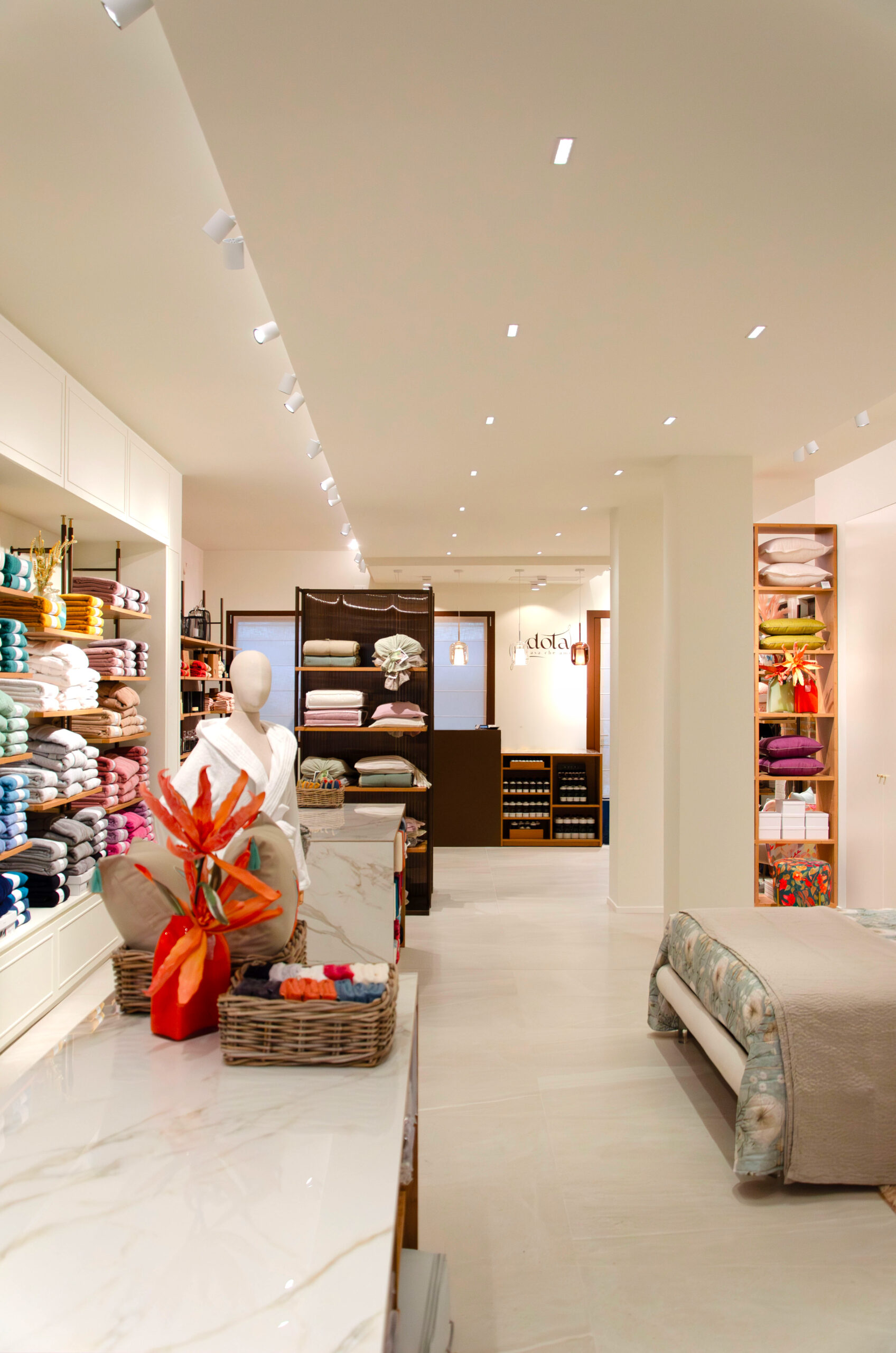 Il negozio di tessile casa “La Dota” è uno spazio dove l’eleganza del classico contemporaneo incontra un’atmosfera calda e avvolgente. Ogni dettaglio è pensato per raccontare una storia di stile: dalla boiserie degli elementi espositivi ai banconi in prezioso marmo di Calacatta.