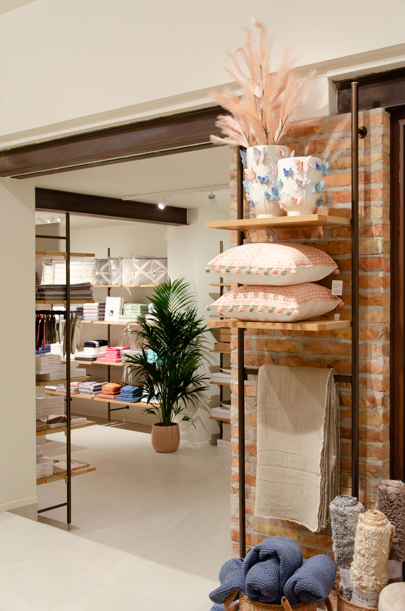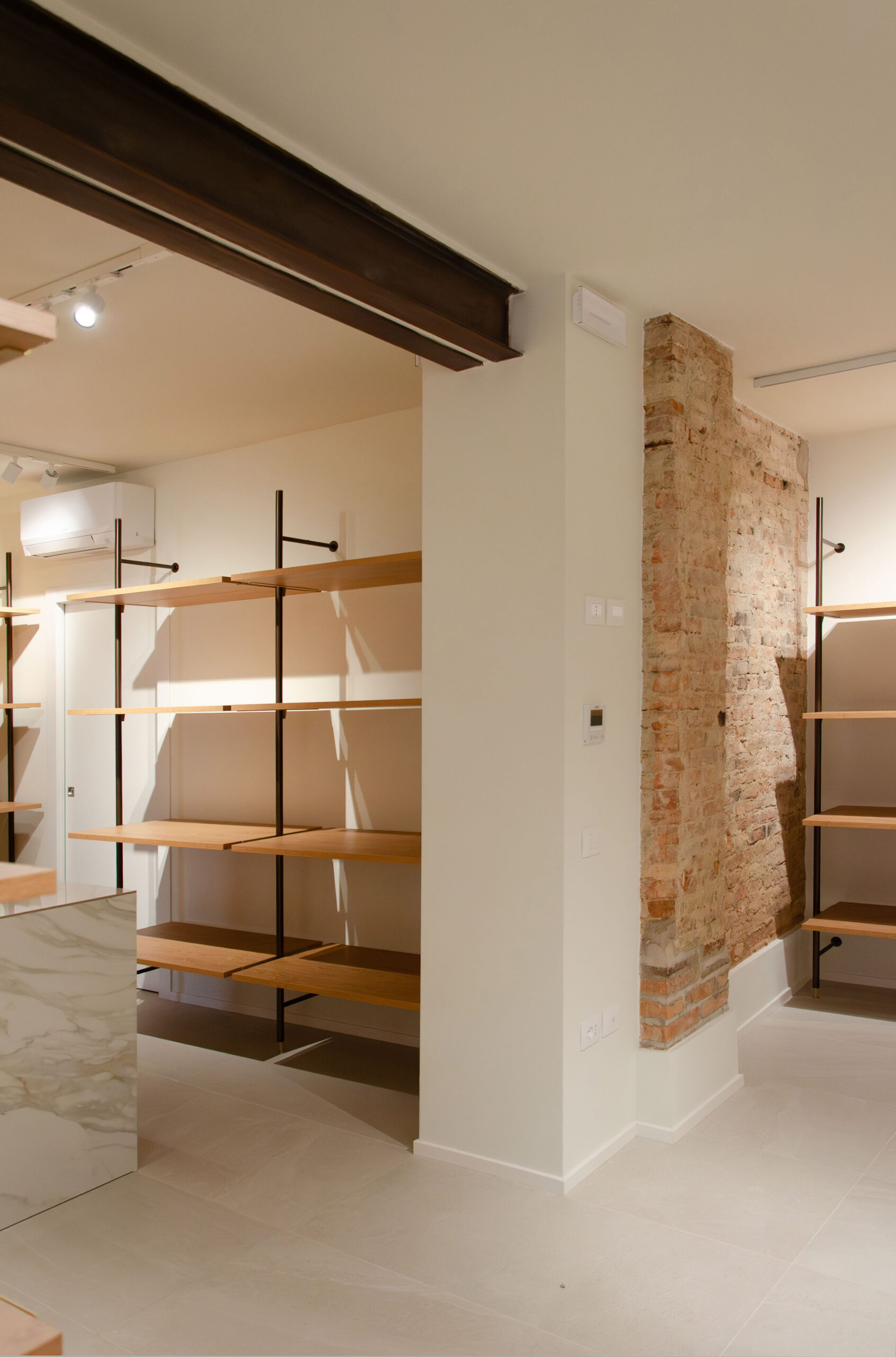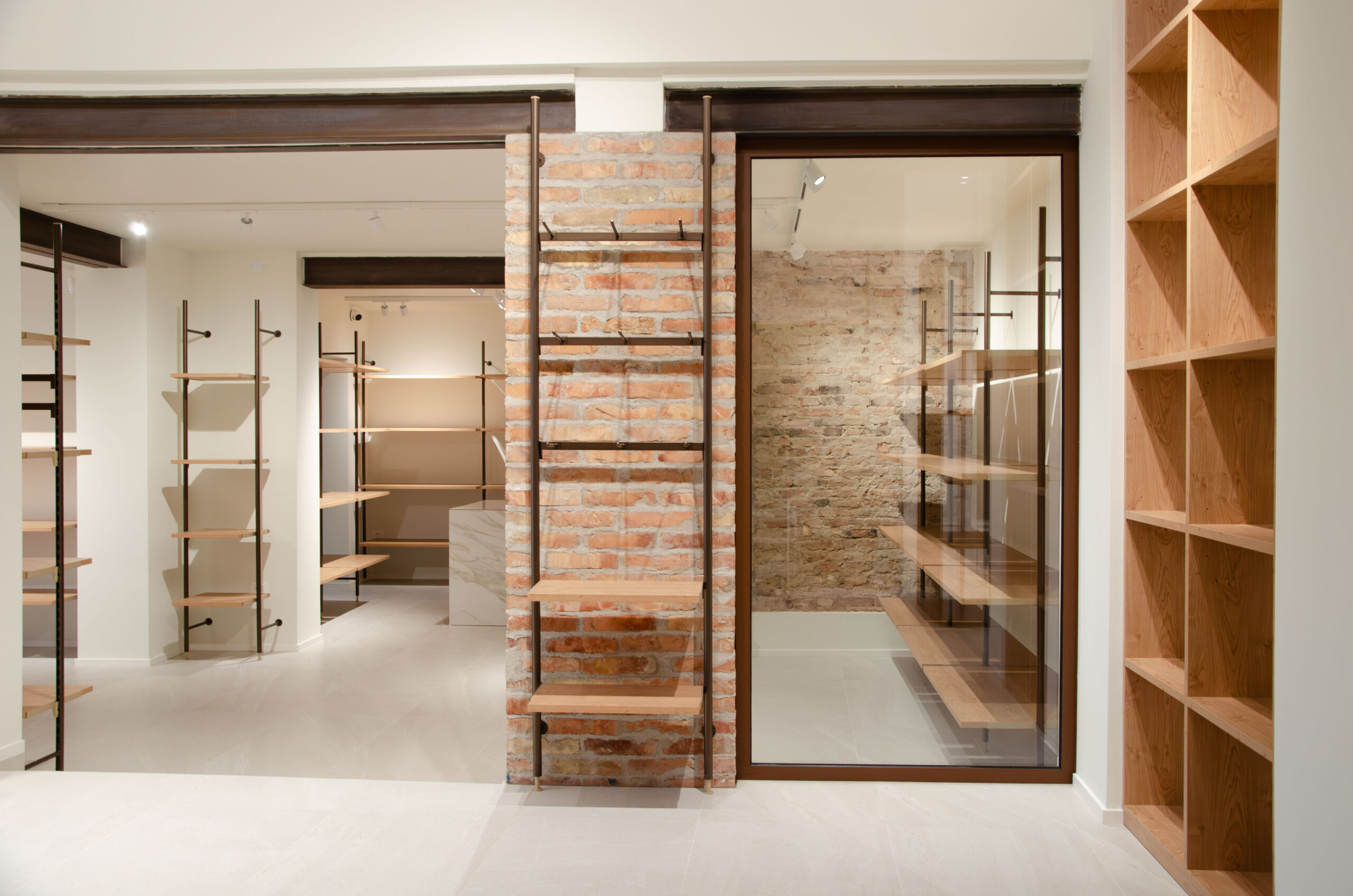 L’architettura stessa dialoga con la tradizione: i mattoni a vista e le putrelle in ferro nero celebrano il legame con il Genius Loci e l’antica usanza della “Dote Nuziale”. In questo scenario, le tonalità del marrone bruciato e il calore del legno d’olmo si fondono con la morbidezza dell’intonaco bianco burro, creando un ambiente domestico che guida il cliente in un percorso d’acquisto fluido, intuitivo e profondamente emozionale.